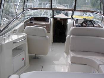 This feature of the week is a great package with lots of extra treats. A 2002 Regal 2600 LSR features a 5.7L MPI Volvo engine with NEW dual props, 2007 Excalibur trailer, walk through windshield, washroom , sink with wash-down, removable cooler, driving lights, swim lights, AM/FM/CD stereo, Horizon GPS, trim tabs, compass, depthmeter, speedo, volt meter, fuel gauge, ski tow, seating for 12, new covers and bimini top and snap in carpet. This is a MUST SEE!!!!!